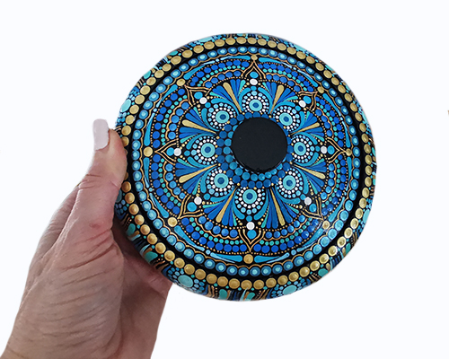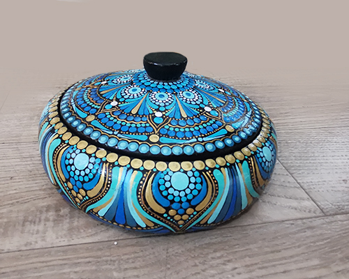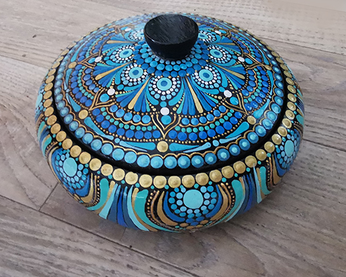 Čudovita Mandala posodica s pokrovom je lep dekorativni izdelek, ki služi za shranjevanje malih dragocenosti, bižuterije, nakita ali kaj podobnega.